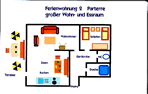 großer Wohn- u. Eßraum mit integrierter Küche und Inventar